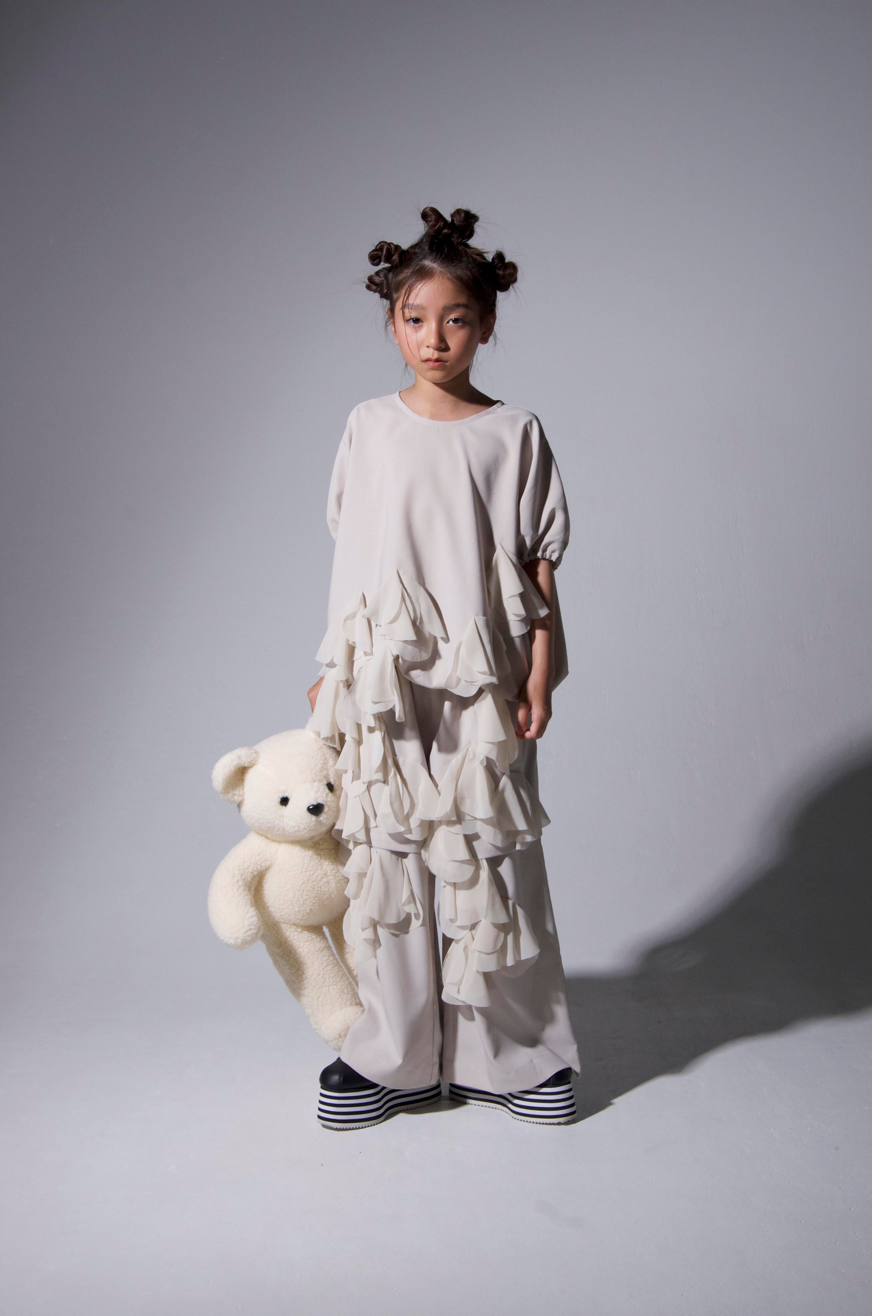 folk made 【 Frill Motif Pants(S,M,Lサイズ)】 26 SS Collection 当店入荷はPINK, RHYME 今期のテーマ PLAYGROUND 君の想像するどんな色にもなれる、それくらい空は自由で無限なんだよ。 The sky is big enough, bright enough, and ready for every color you can dream S 90~105cm ( 2.5~4years) M 110cm~125cm(5~8years) L 125cm~140cm(8~11years) LL 140~155cm (11〜14years) F lady's Free size (160~162cm) 素材: cotton 100% 寸法: 総丈/ 股上/ 股下/ ウエストゴム上がり S: 57/ 24/ 33/ 44 M: 70/26/ 44/48 L: 80/ 28/ 52/ 53 LL: 89/ 29/ 60/ 58 F: 98/ 29.5/ 68.5/64 モデル: 135cm, 130cm/ どちらもLサイズ着用
