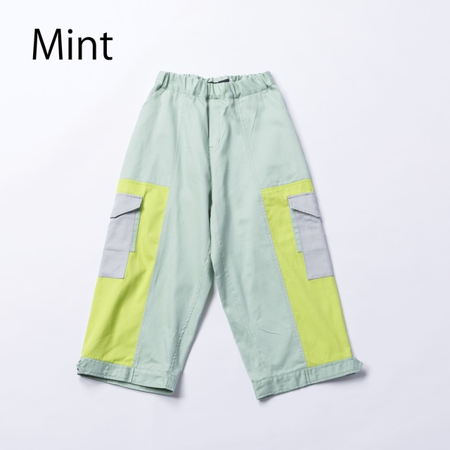 【nunuforme トリコロールカーゴパンツ(ADULT)】 当店入荷はMintです。 カジュアルで機能的なデザインが特徴的なアイテムです。 両サイドに配置された大きなポケットは、実用性を高めています。 デザインはスポーティでありながら、オリジナリティ溢れるカラーリングは日常的にも使いやすいアイテムです。 Made in Japan 素材: cotton 100% モデル着用サイズ: kids: 126cm/ 125着用 ADULT: 163cm/AD2着用 平置き実寸: 1(155)/ 2(163) 総丈 (cm): 92/ 97 股下 (cm): 56/ 59 最大ウエスト寸 (cm): 99/ 105