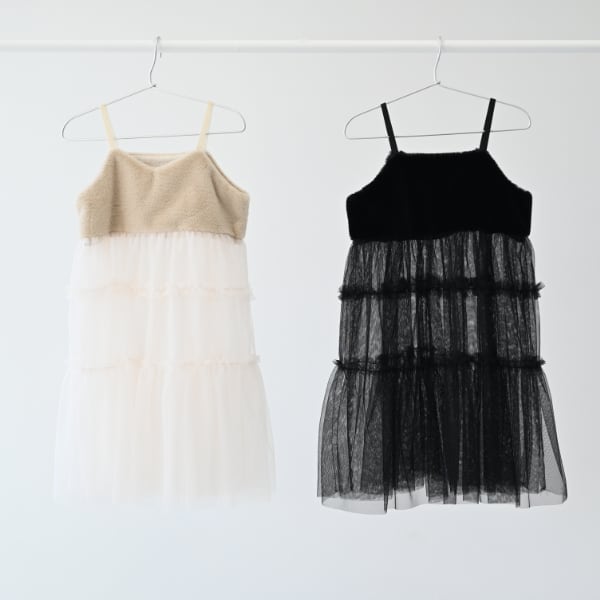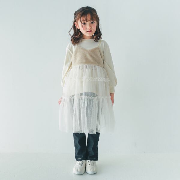 秋冬の重ね着が可愛いくなるチュールワンピースです。