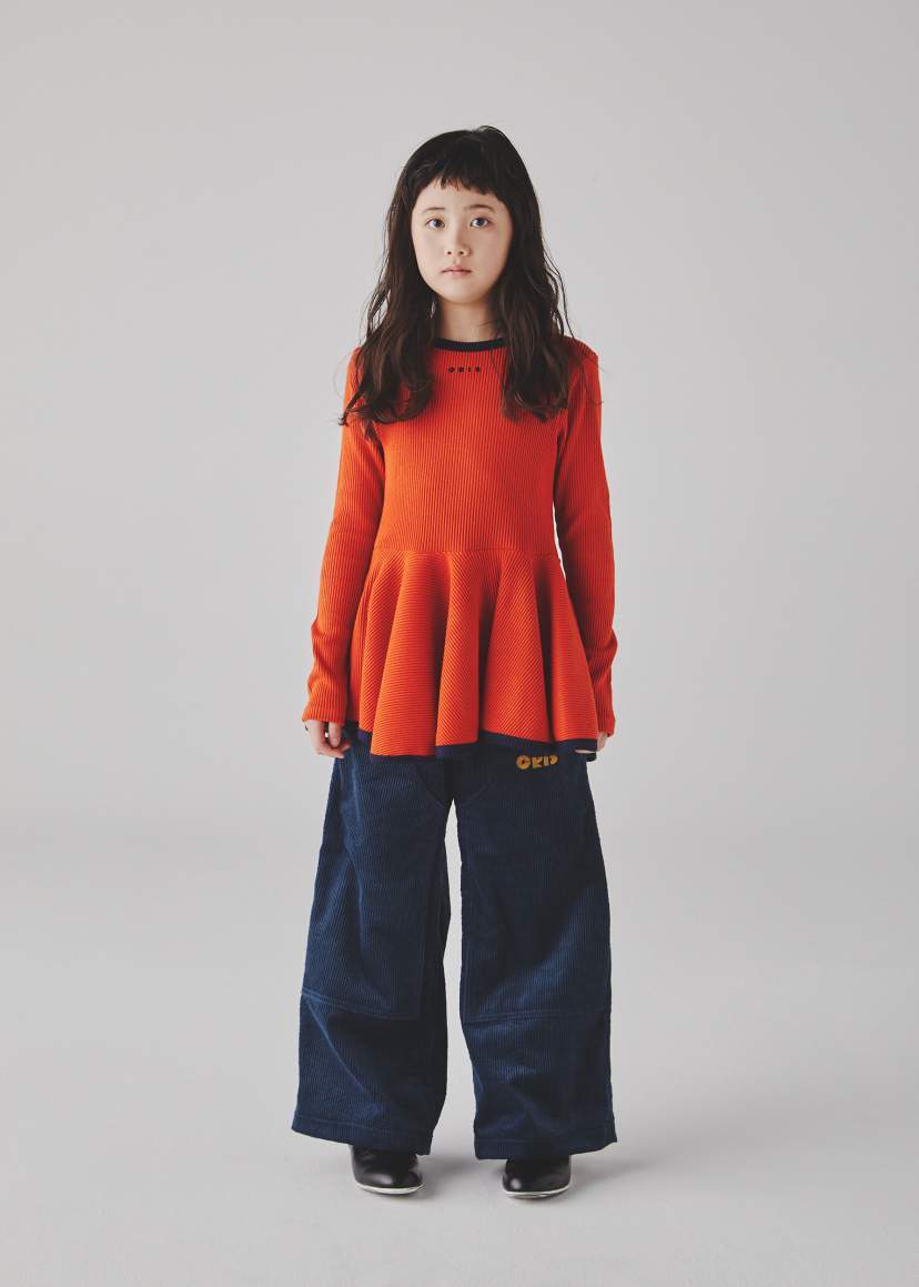 下側のフレアパーツはほぼ円形に近いパターンで生地をふんだんに使用しております。