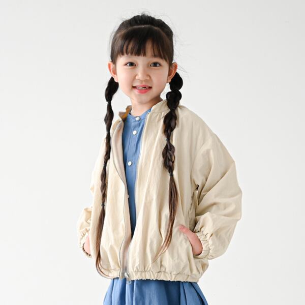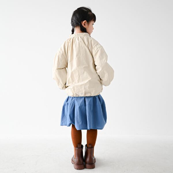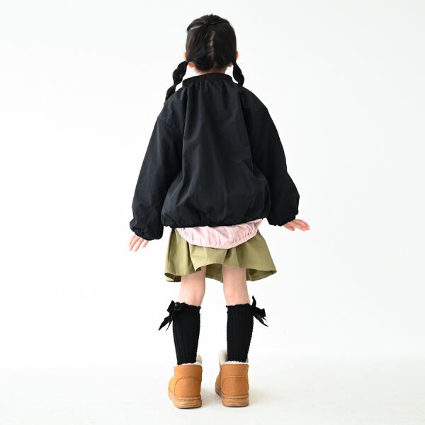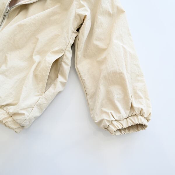 丸めのシルエットで可愛さをプラスしたナイロンジャケットです。裏地にフリースになっているので暖かい仕様になっております。