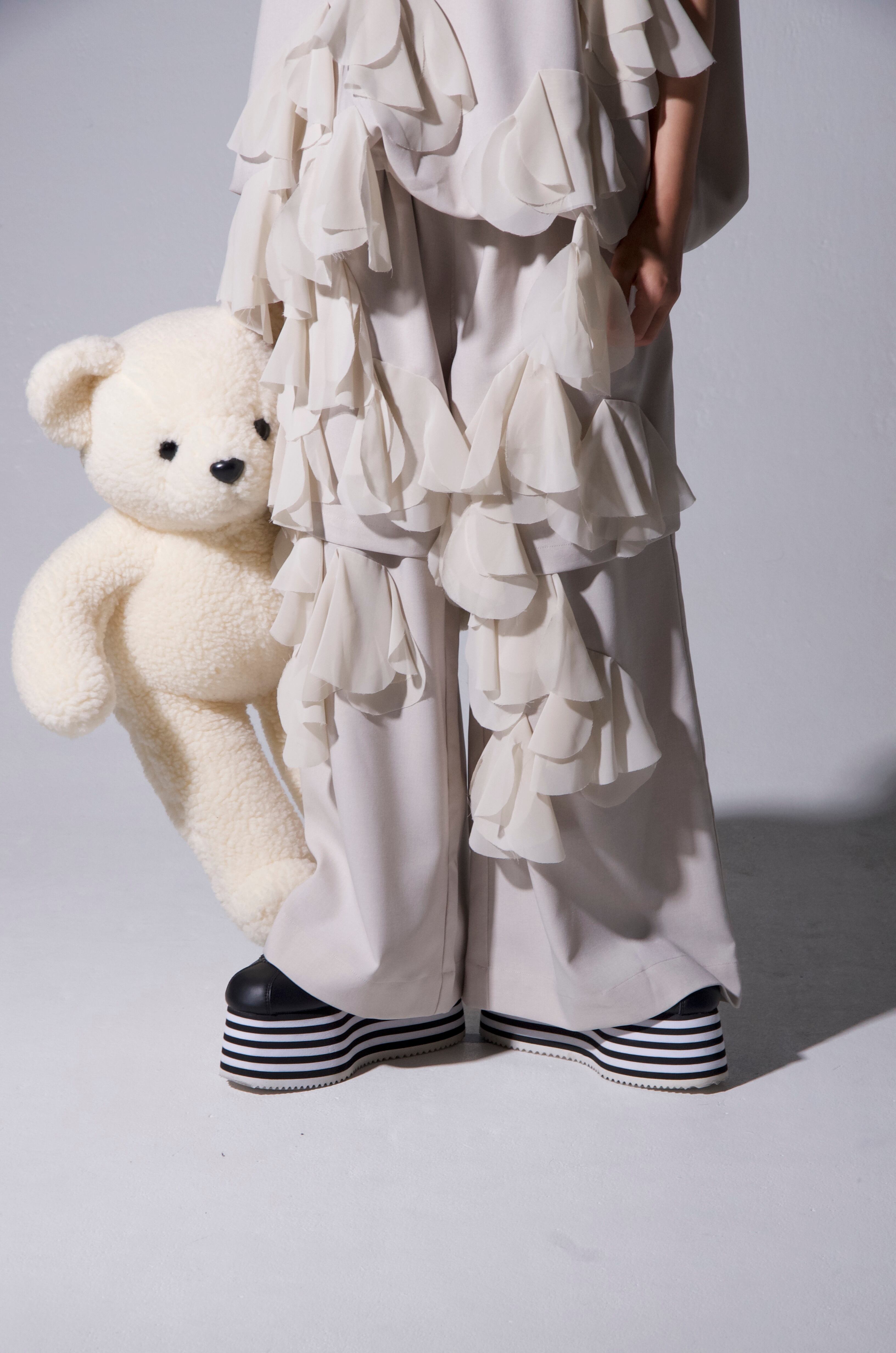 ・前身頃にシフォン生地のお花を蕾のように縫い付け