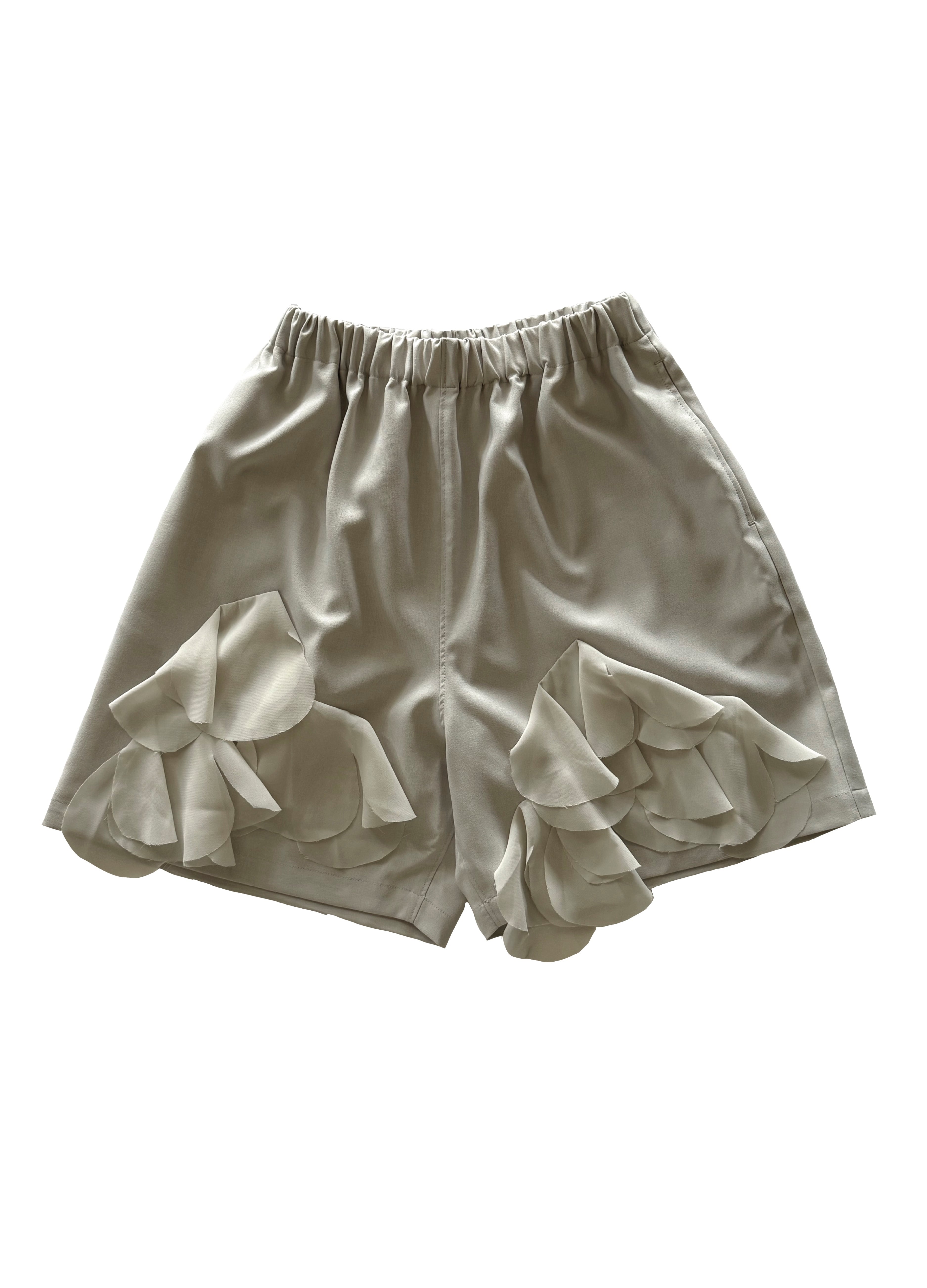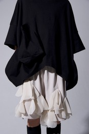 ・前身頃にシフォン生地のお花を蕾のように縫い付け