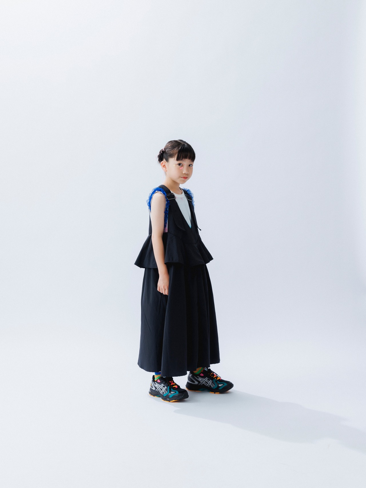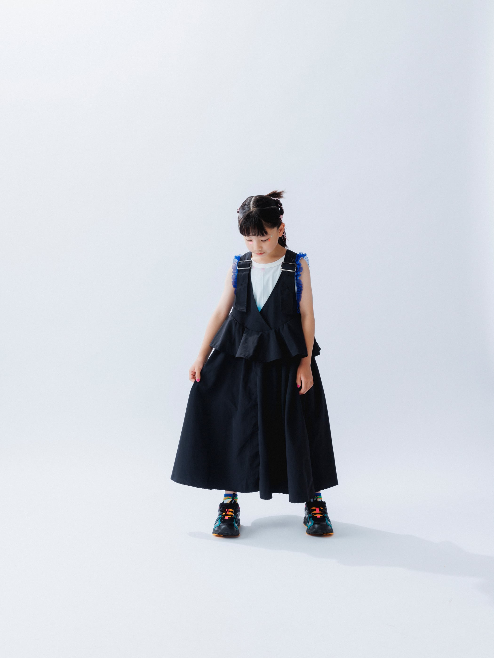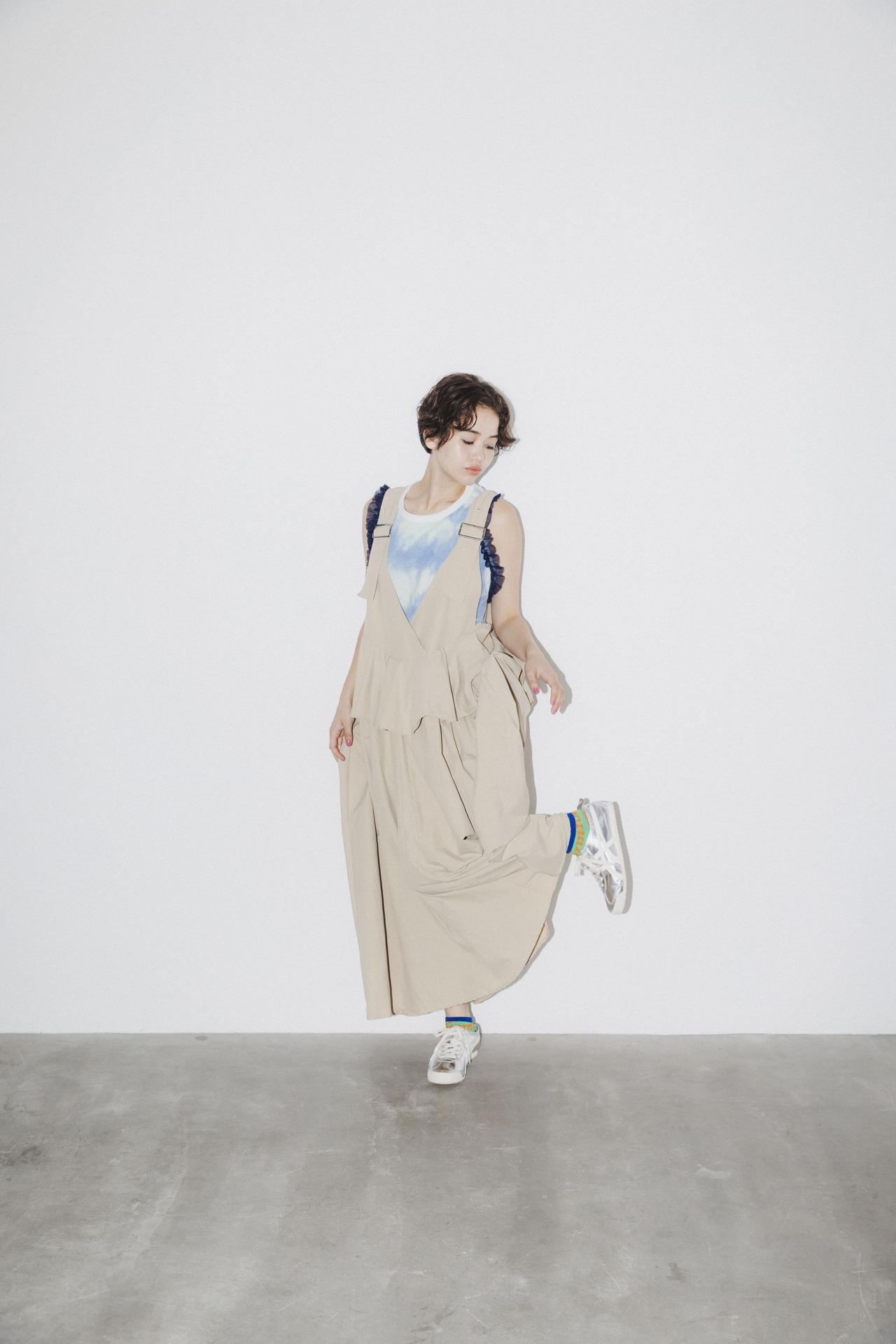 さらに、ウエスト部分にフリルが施されており、レイヤードスタイルが完成します。