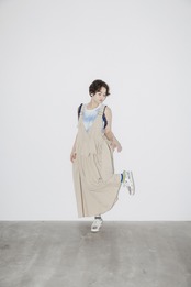 裾に向かって軽やかに広がるデザインが魅力のジャンパースカートです。