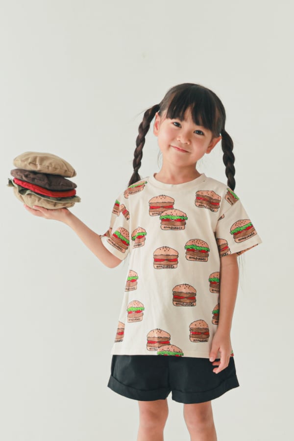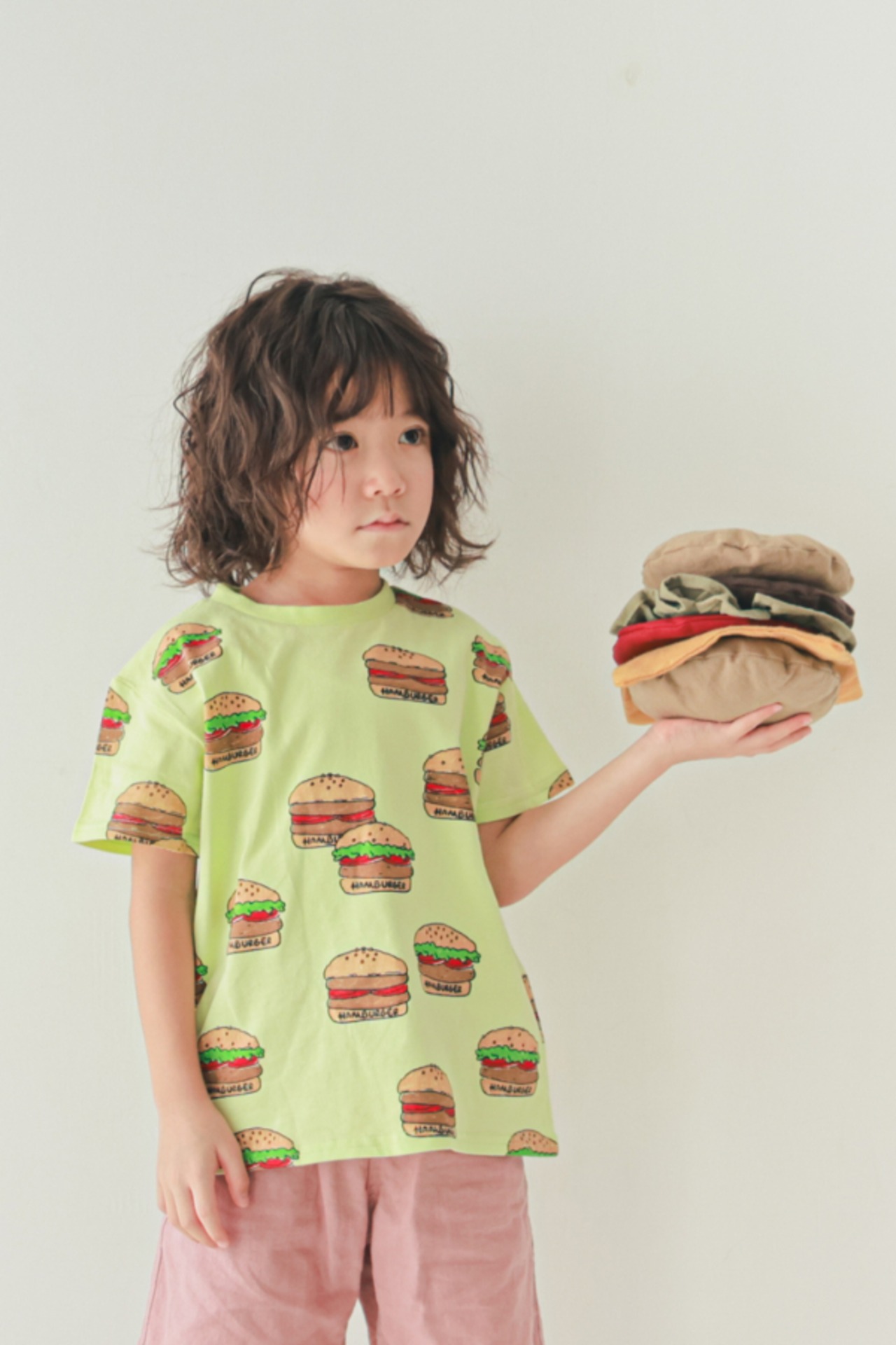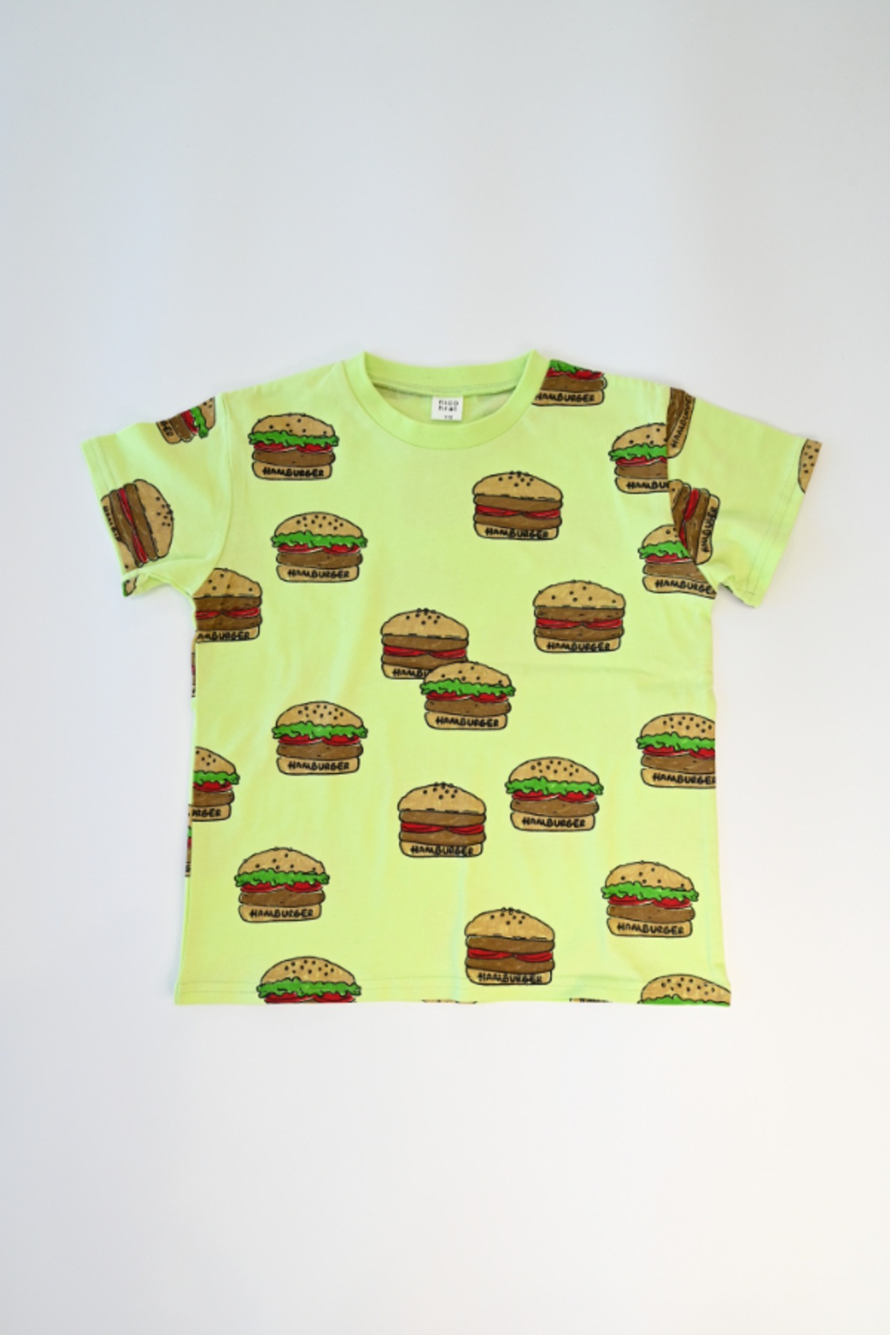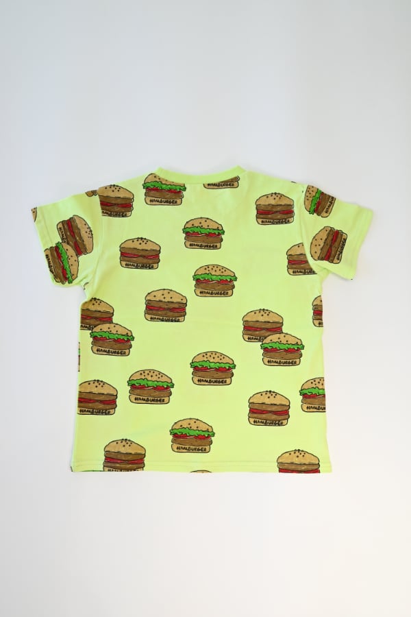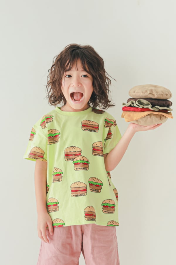 手描きなので硬くなりすぎず味のあるハンバーガープリントです。