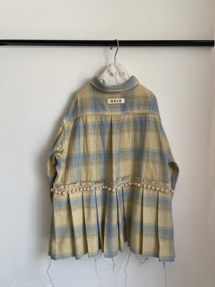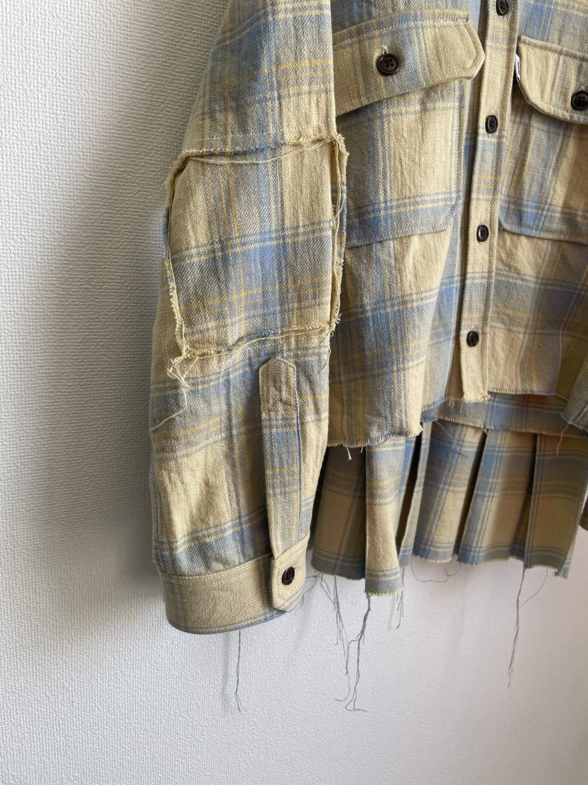 まるでリメイクをしたかのようにドッキングされたプリーツが特徴のシャツになります。